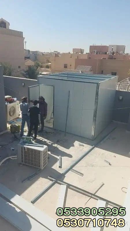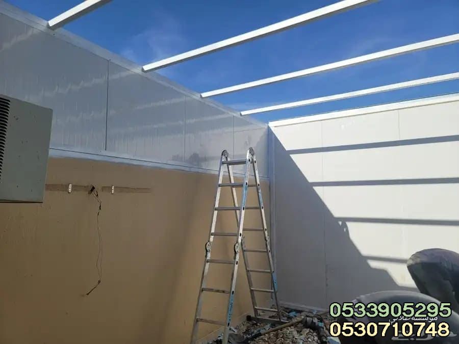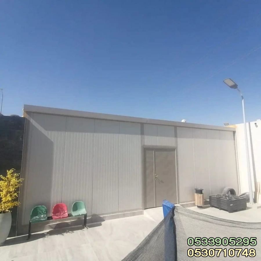 نحن متخصصون في تصميم وبناء ملاحق جاهزة بسقف ساندوتش بانل بأشكال عصرية، مع تشطيب نهائي أنيق، وخدمة سريعة بأسعار تنافسية.